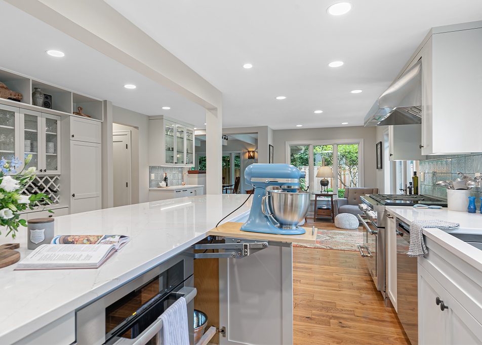 This 1940 Lake Oswego kitchen remodel blends modern function with timeless Craftsman style. Located on the Oswego Lake Country Club course, the redesigned space reflects the homeowners’ love of cooking and entertaining. By reconfiguring the original U-shaped layout and opening both ends, the kitchen and wet bar now flow effortlessly for gatherings. A mix of classic details and fresh finishes creates a true cook’s kitchen, designed for connection and conversation.